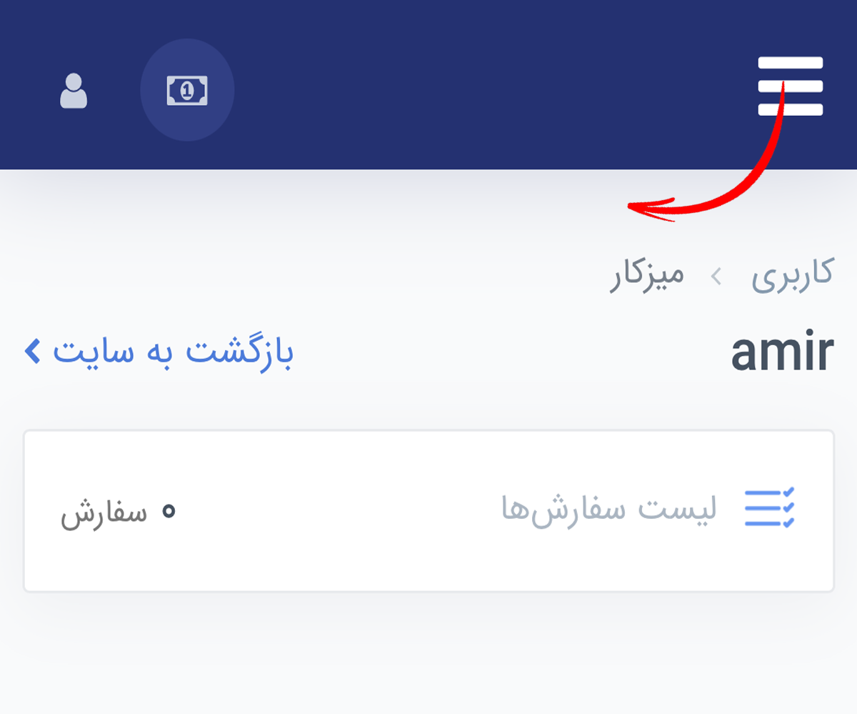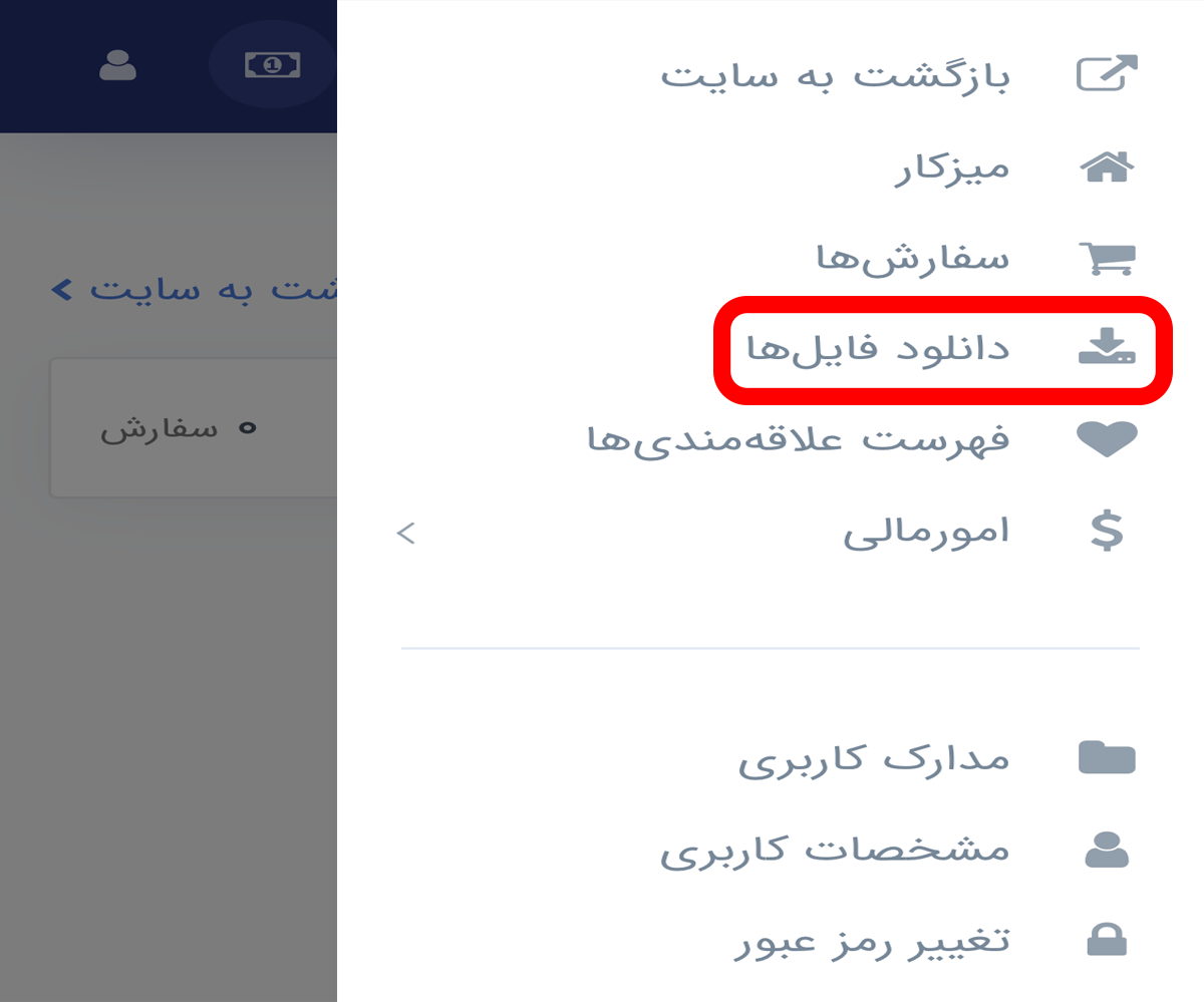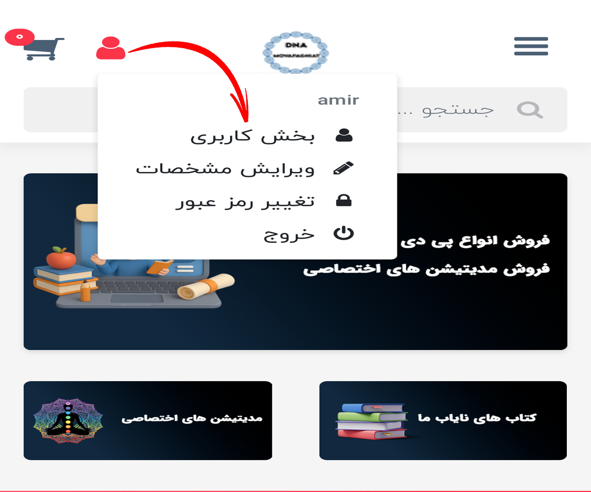 ۱.لطفاً بعد از تهیه pdf وارد حساب کاربری تان شوید و رو علامت آدمک کلیک کنید و بخش کاربری رو انتخاب کنید.